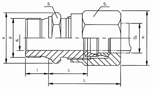 標(biāo)記示例: 公稱壓力J級(jí),管子外徑D0為14mm的卡套式端對(duì)接直通管接頭: 管接頭J14 GB/T3754.1-1983 |