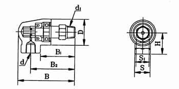 旋 轉 接 頭 ● 螺塞 代 號(訂貨號) d(R) L h L0 S 重 量(kg) JB/ZQ4448 1/4 16 5 6.0 10 0.015 3/8 18 6 6.4 13 0.025 標記示例:螺塞R1/4 JB/ZQ4448 代 號(訂貨號) d d1 D B B1 B2 H S S1 重量(kg) 對應號 Rc R ZY435.1.00 1/4 3/8 29 71 31 54 24 19 17 0.1768 YF13.1 ZY435.2.00 1/4 69 29 52 14 0.1666 YF13.2 公稱壓力:2MPa標記示例:螺紋d1為Rc3/8的旋轉接頭 旋轉接頭 Rc3/8 ZY435.1.00 上一條 焊接式接頭 下一條 活 接 頭 快換接頭 異徑活接頭 快換接頭