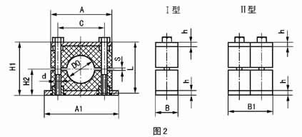 注:當(dāng)管路介質(zhì)壓力較高時,可選用B系列I型和II型,但需縮小相鄰管夾間距。