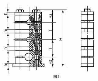 a)同一外形尺寸的B 型系列Ⅰ型管夾,可疊壘成組成安裝,但最多不超過5 根管子。