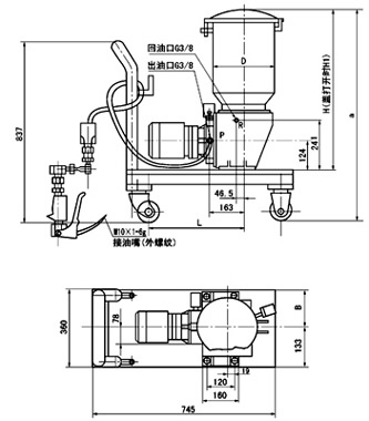 (1)潤(rùn)滑泵的外形尺寸 (2)帶小車(chē)潤(rùn)滑裝置外形尺寸
