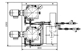 (3)雙泵帶電動(dòng)換向閥潤(rùn)滑裝置外形尺寸