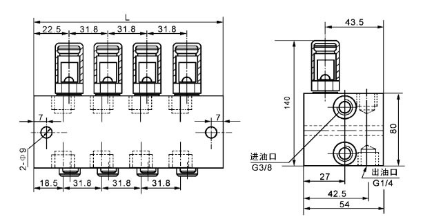 | 若需相應(yīng)上下出口合并時(shí),只需將上出油孔內(nèi)的壓緊螺塞用6mm內(nèi)六角扳手?jǐn)Q出,取出分油套通孔向下裝入,再擰緊壓緊螺塞,此時(shí)上出口用G1/4螺塞封堵以防灰塵侵入。 |