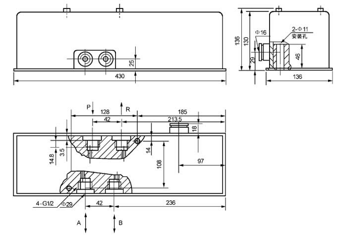 | 五、使用說明 1、該閥應安裝在系統被控主、支管路的前端,且位于通風、 干燥便于檢查及周圍無運動機構干涉的部位。 2、當作二位二通使用時,須把出油口“B”和回油口“R”封堵。 3、當作二位三通使用時,須把出油口“B”封堵。 4、電控接線按上圖原理連接。 六、常見故障及排除方法 1、換向閥不換向。 可能無換向信號輸入電機,線腳焊接脫落;電機軸與偏心輪松動未緊固;閥腔內進入雜質滑芯卡死等原因,查明后排除即可。 2、滑芯二端漏油。 主要是二端密封圈損壞引起,可能是密封圈庫存久或長時間使用已老化,更換密封圈即可。 | |||||||||||||||