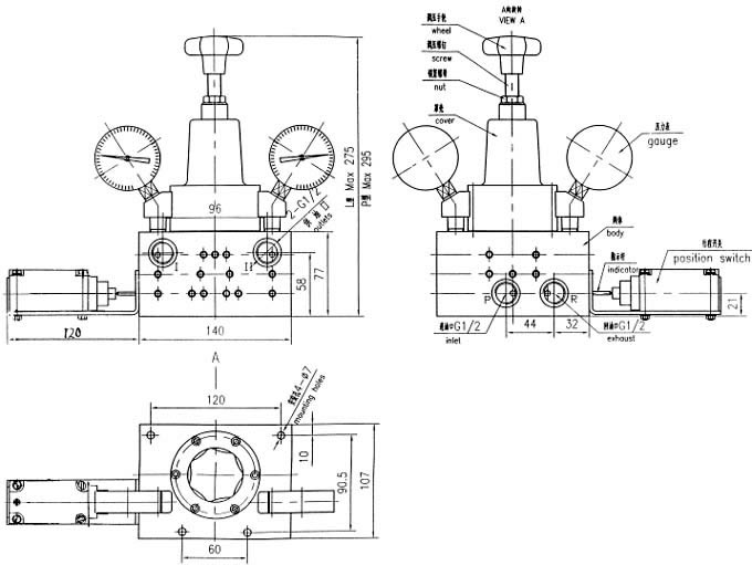 一、概 述 ZYP型液壓自動換向閥是我廠吸收國外先進技術、在同類產品DR4-5基礎上自行研制開發的新一代產品,它廣泛適用于冶金、化工、電力、水泥機械、建材機械、港口機械雙線干油集中潤滑系統中,尤其適用于冶金行業快速離檢干油潤滑系統、水泥機械環式潤滑系統中。具有結構緊湊、體積小、重量輕、外型美觀、操作方便、換向穩定、壓力波動值小、使用壓力等級高、性能可靠、壓力直觀、換向壓力可調等優點,代替了國內20Mpa、40Mpa液壓換向閥、二位四通電磁閥、三位四通電磁閥,以及末端必需配備的壓力操縱閥、壓差開關、電氣管線配置等元件,組成干油潤滑系統,從而減少了系統故障、降低了投資成本。本閥可配置行程開關或接近開關,從而實現整個系統的控制。 二、功能和結構說明 本閥為二位四通自動液壓換向閥,上平面設有兩塊壓力表和調壓手輪。換向壓力由手輪調節,順時針壓力升高,反之壓力降低。本閥門進油口P與泵出油口連接,回油口R接貯油桶,供油口Ⅰ、Ⅱ分別與兩條供油管路連接。工作時當Ⅰ路油壓達設定壓力,換向閥自動切換到Ⅱ路,這樣潤滑泵就能循環往復地向兩條管路供送潤滑脂。