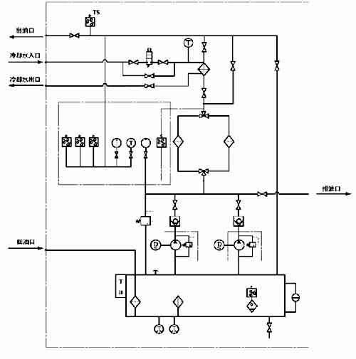 | 1、在雙筒過濾器上裝有差壓訊號器,當過濾器進出口壓差超過0.10~0.15MPa 時,差壓訊號器發出報警信號,用來通知切換工作濾網筒,以便清洗或更換濾網(此裝置設計在冷卻器裝置之前;油粘度較高者更適合)。 2、在冷卻器的進水口裝有一個直讀式溫度計和電磁水閥,用來觀察進水溫度和控制冷卻水的通或斷。在系統的出油口處,裝有一個電接點、溫度計和溫度控制器,用于控制工作油溫;當出口油溫高于某一調定的溫度時,電磁水閥自動開啟,冷卻器投入工作,直到油溫恢復正常為止。如冷卻器已投入工作,系統的油溫繼續上升,達到最高溫度時,溫度控制器發出油溫過熱報警信號。當冷卻器需要更換或維修時,可關閉冷卻器的進出口閥門,打開旁路閥門,油液即不經冷卻器直接送往潤滑點。 3、在油箱上裝有二個電接點溫度計和二個液位開關,當油箱油溫低于某一調定溫度時,電加熱器通電或蒸汽閥門開啟,對油液進行加熱,直到達到正常操作油溫為止。當油箱中油液的溫度低于最低調定溫度時,油泵不能啟動,需對油箱中油液加熱。當油箱的液位達到上限或下限時,液位開關發出報警信號。 4、型號后帶“A”者為有壓力罐的裝置,可滿足發生意外事故或突然停電時,儲存在壓力罐中的油液可作臨時壓力油源向系統短時供油,但需注意壓力罐上的一般單向閥應水平安裝,不得向下安裝(對較小的旋啟式單向閥允許向上安裝),附圖中應作相應改變。 5、配有電控柜和儀表盤,觀察運行參數方便,可實現自動控制和事故報警。 | |||||||||||||||||||||||||||||||||||||||||||||||||||||||||||||||||||||||||||||||||||||||||||||||||||||||||||||||||||||||||||||||||||||||||||||||||||||||||||||||||||||||||||||||||||||||||||||||||||||||||||||||||||||||||||||||||||||||||||||||||||||||||||||